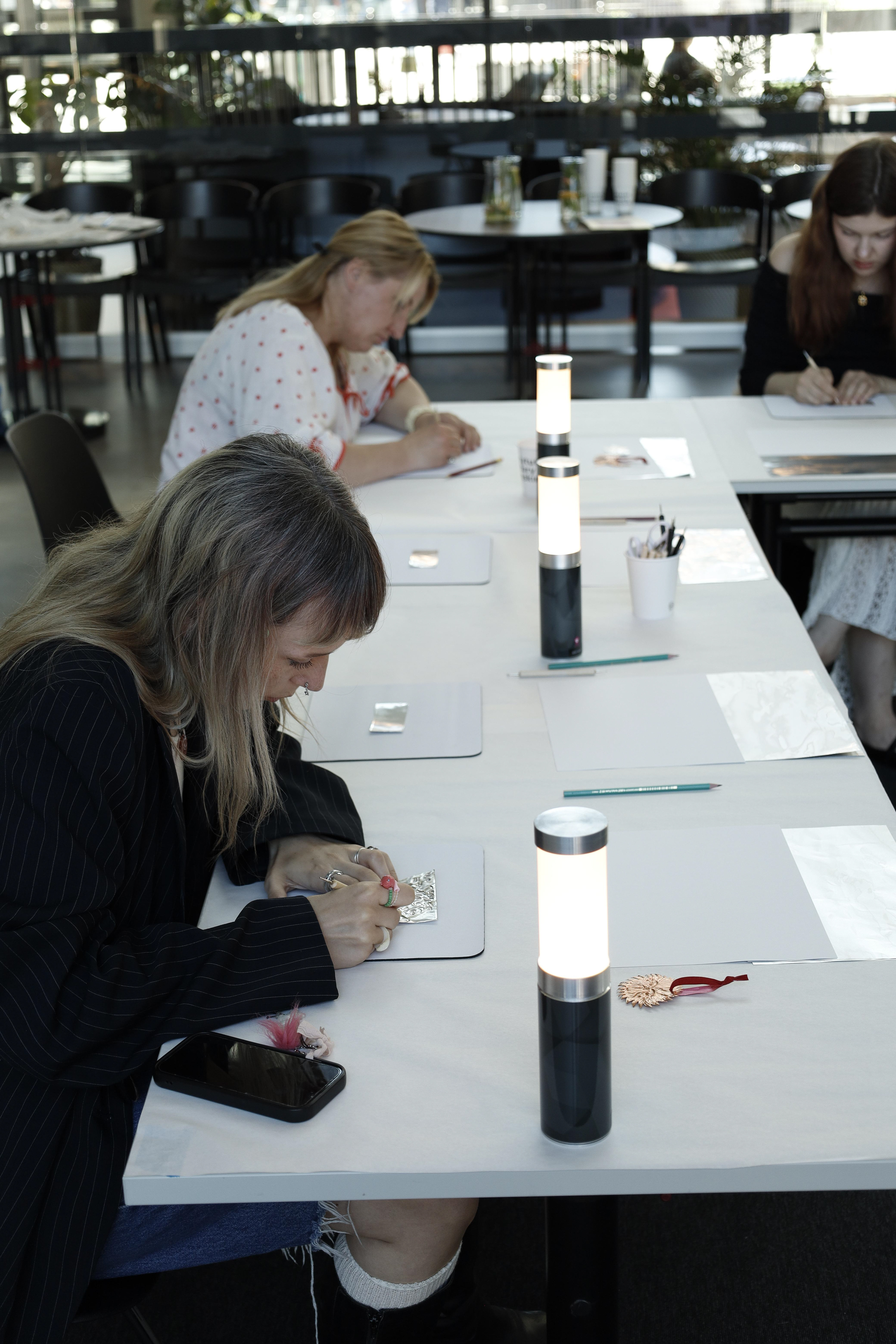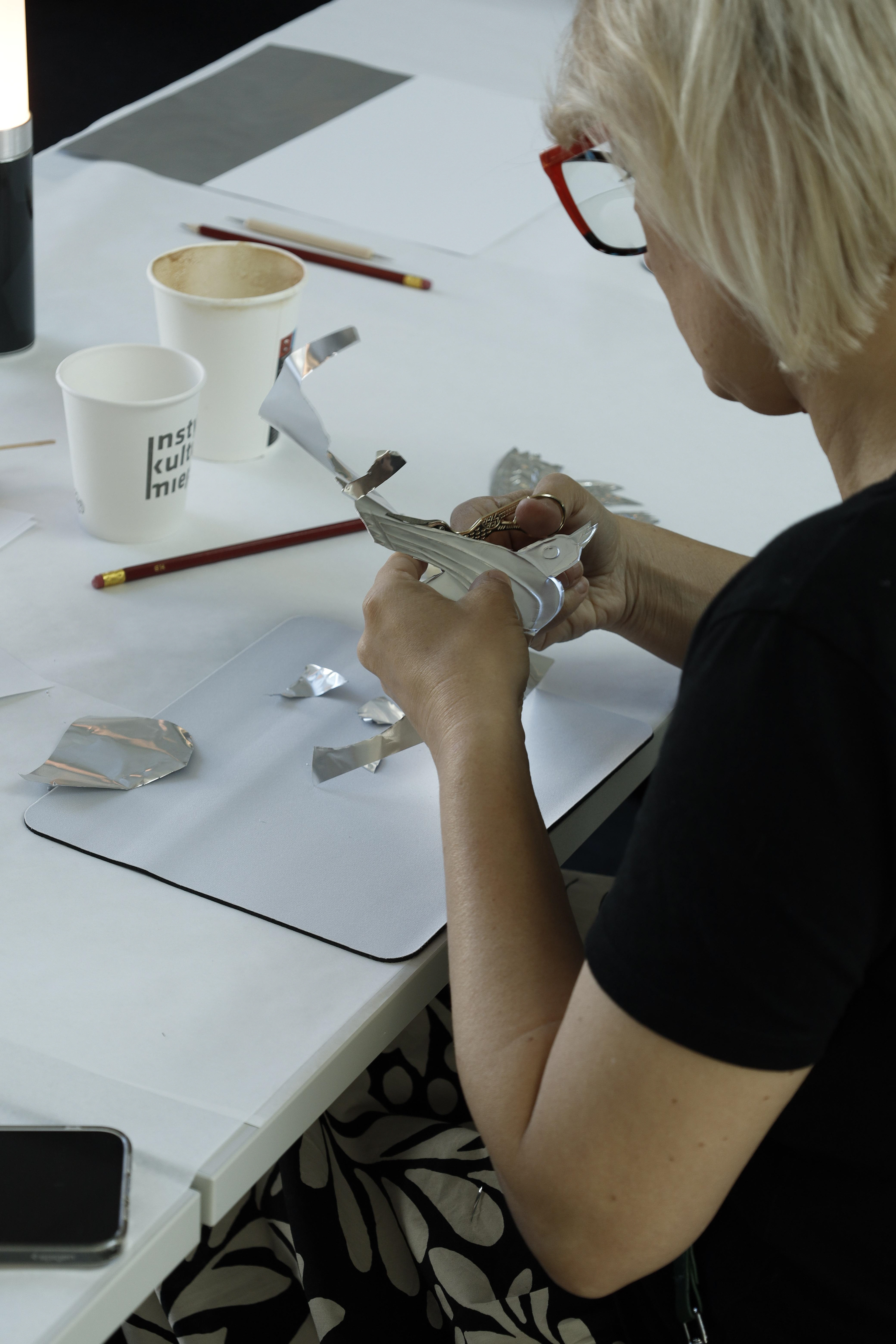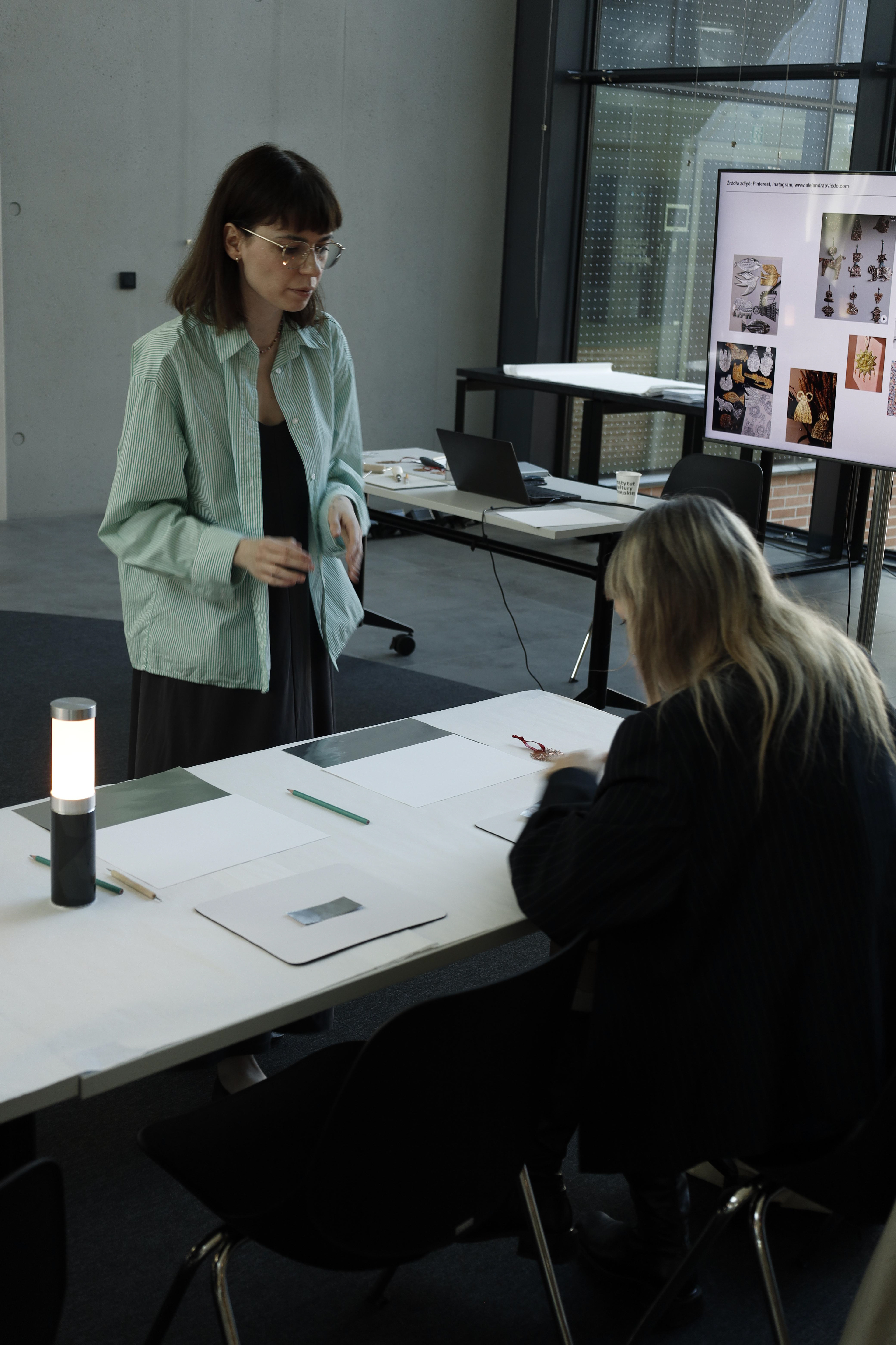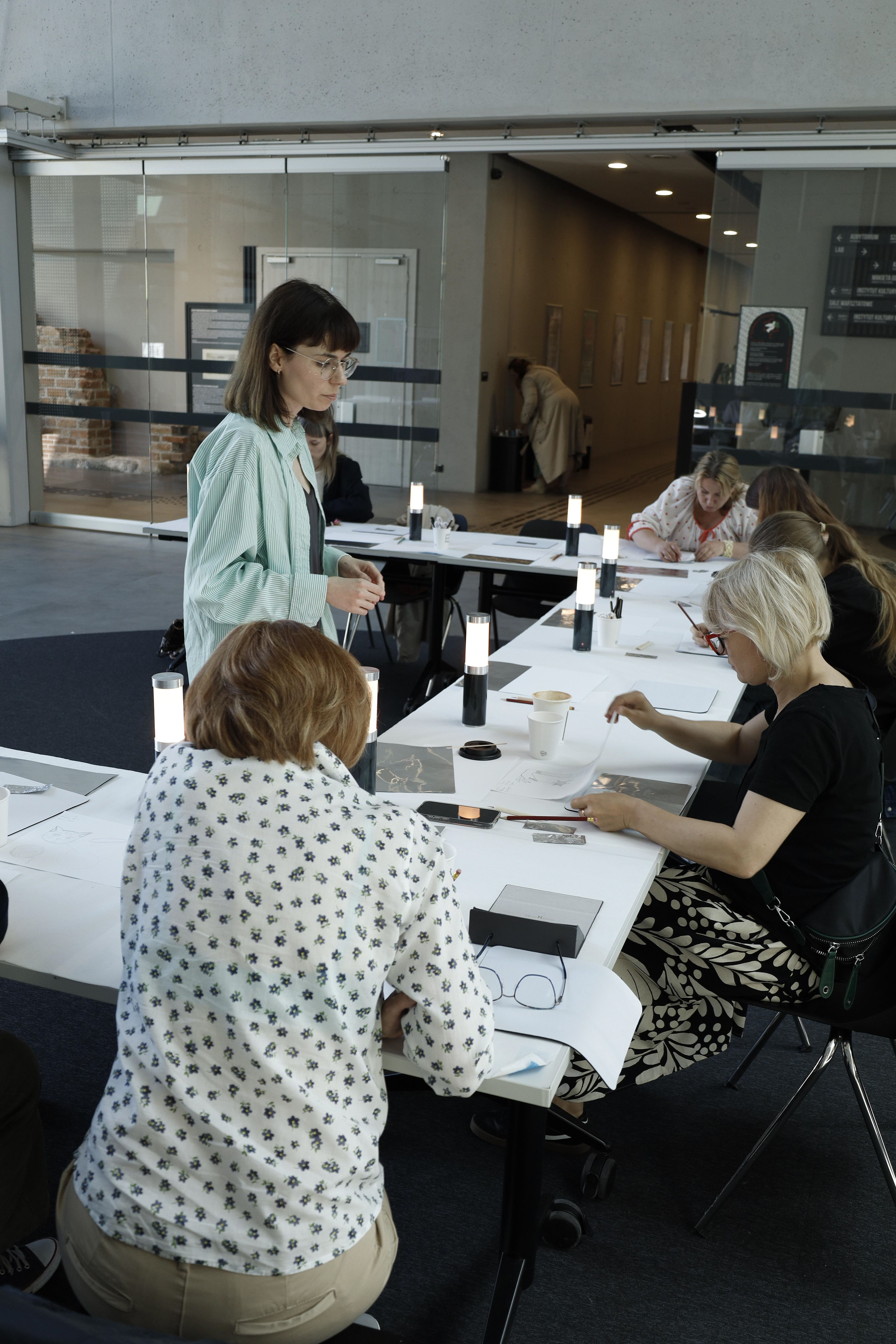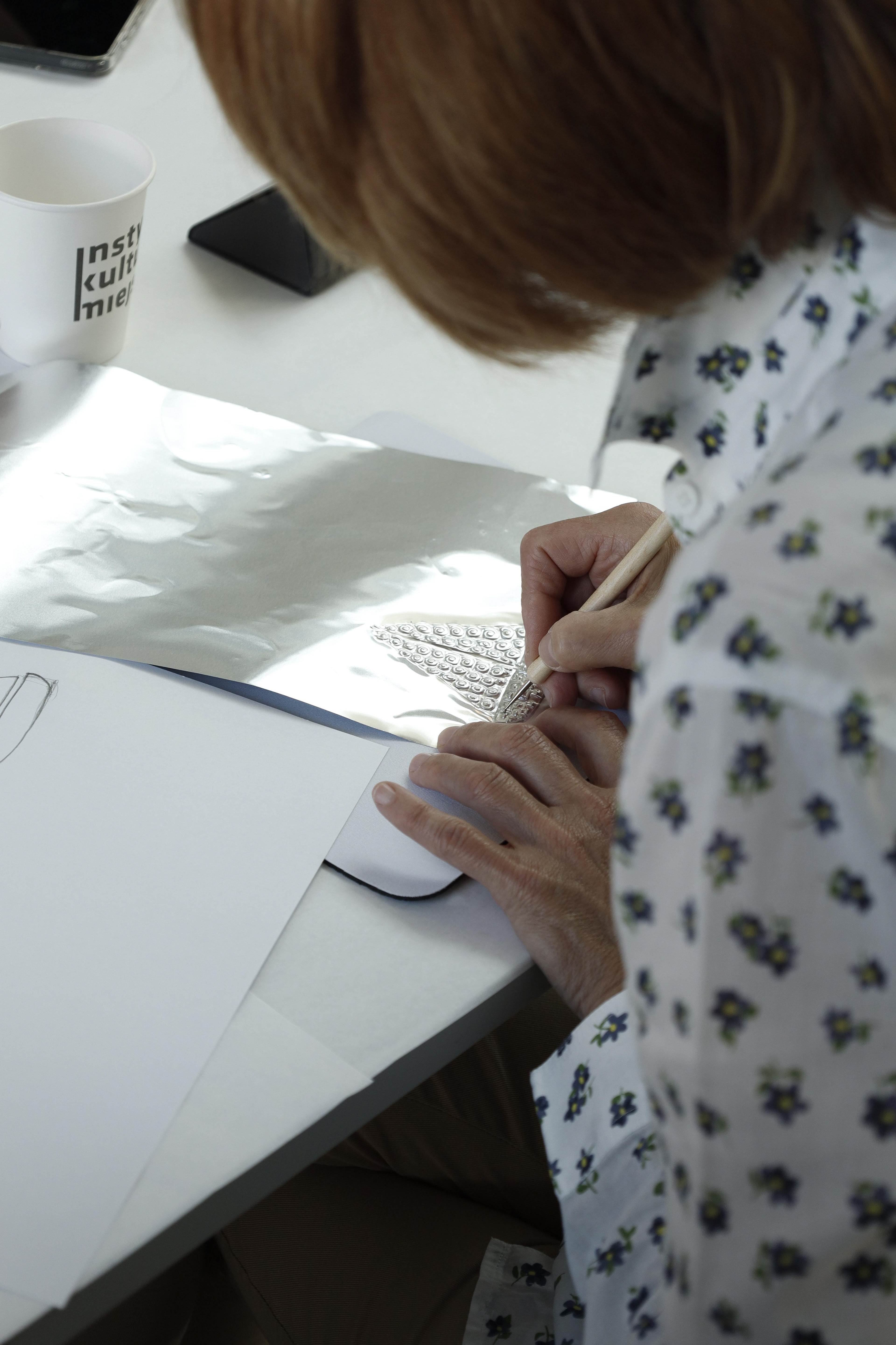 Podczas warsztatów wprowadziłam uczestników w technikę tworzenia ilustracji z cienkiej blachy, traktując metal jako narracyjne medium. Pracując pod moim kierunkiem, uczestnicy stworzyli autorskie formy graficzne, łącząc eksperyment z intuicyjnym procesem twórczym.